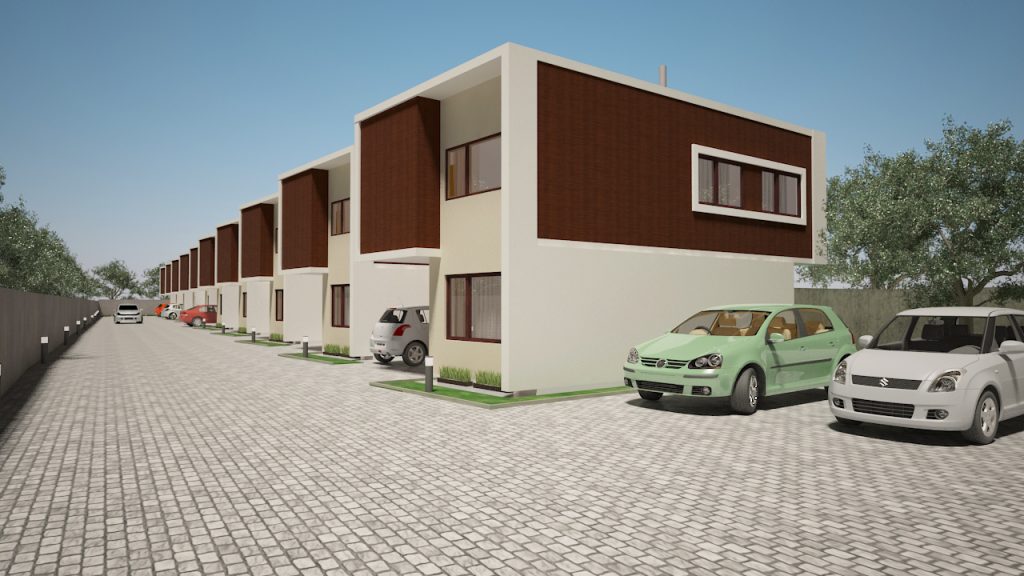 Los espacios comunes contemplan una calle de servicio con iluminación exterior y estacionamientos para visitas.